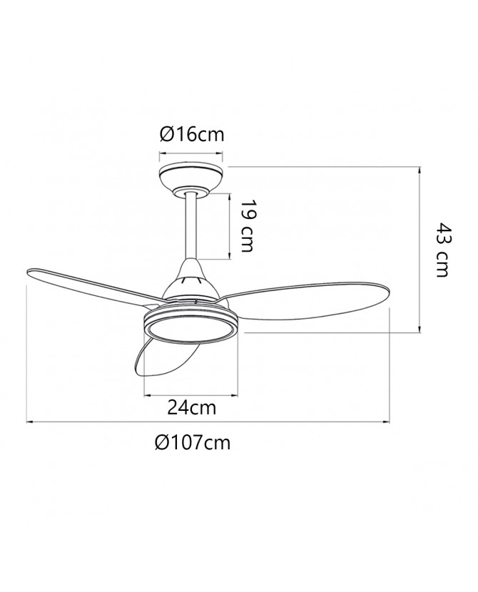 Lámpara ventilador de techo Mahon 107CM 3 PALAS, de diseño incorpora motor DC de bajo consumo, que garantiza un funcionamiento silencioso y eficiente. Dispone de varias velocidades regulables y función inversa verano/invierno para un uso durante todo el año. Incluye sistema de iluminación 21w led. CCT (3000k-4000k-6000k), con memoria. Temporitzador y mando a distancia. Ideal para aportar confort, eficiencia energética y estilo a cualquier estancia. Detalle del diseño un aro iluminado que le da un aspecto diferente. * En el modelo negro, el aro es RGB.